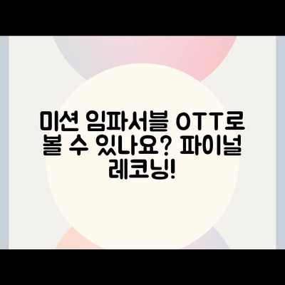 - 첫 번째, **OTT 플랫폼 선택** – 넷플릭스, 디즈니+, 티빙 등 사용 가능한 플랫폼에서 미션 임파서블 시리즈를 확인해 보세요.
