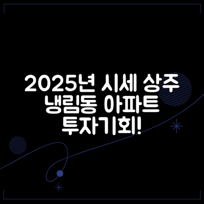 이번 가이드는 경상북도 상주시 냉림동 냉림주공2단지 아파트에 대한 투자 가치를 분석하고, 향후 시세 변동 예측을 통해 효과적인 투자 전략을 세울 수 있도록 도와드립니다.