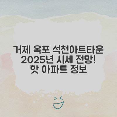 경상남도 거제시 옥포동 석천아트타운 아파트의 시세가 2025년 11월에 어떻게 변동할지를 분석할 때, 여러 가지 요소를 고려해야 합니다.