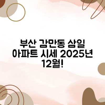 2025년 12월 부산시 남구 감만동 삼일 아파트 시세는 주요 변동성을 보일 전망입니다. 이번 섹션에서는 다양한 시장 트렌드를 분석하고, 각각의 장단점을 살펴보겠습니다.